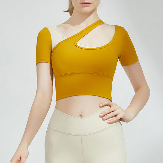 Spring-summer sports short-sleeved fitness wear with chest pad buff buff running T-shirt for women with tight back stretch yoga wear