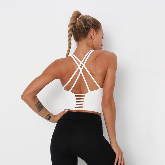 New cross back sports bra with thin straps shock-proof push-up sports yoga vest